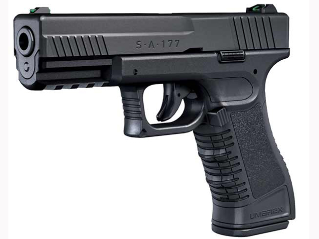The umarex is a co2 air pistol so it runs of gas this is a nice looking pistol it is 177. the gas slots in at the back of the grip.
