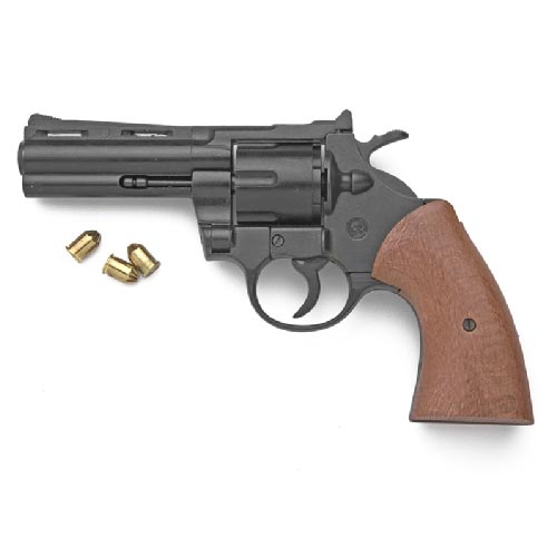 This is a blank firing pistol which runs of blank's these make a loud bang when fired giving a relistic feal and sound this perticular model is a magnum revolver favoured in america, it is a nice pistol.